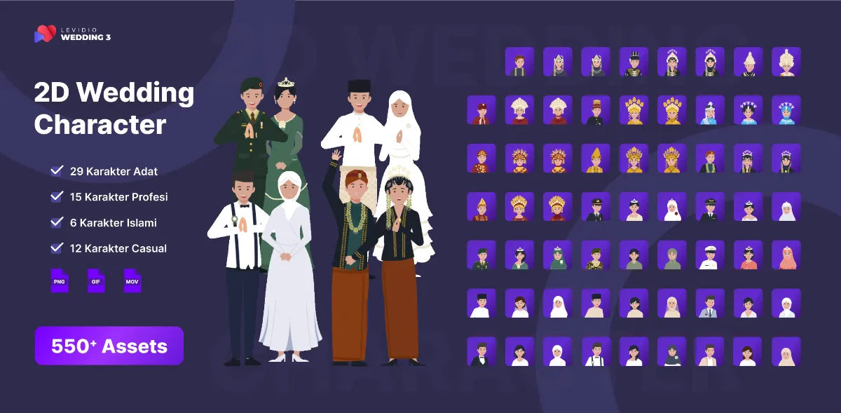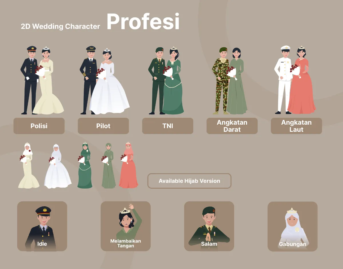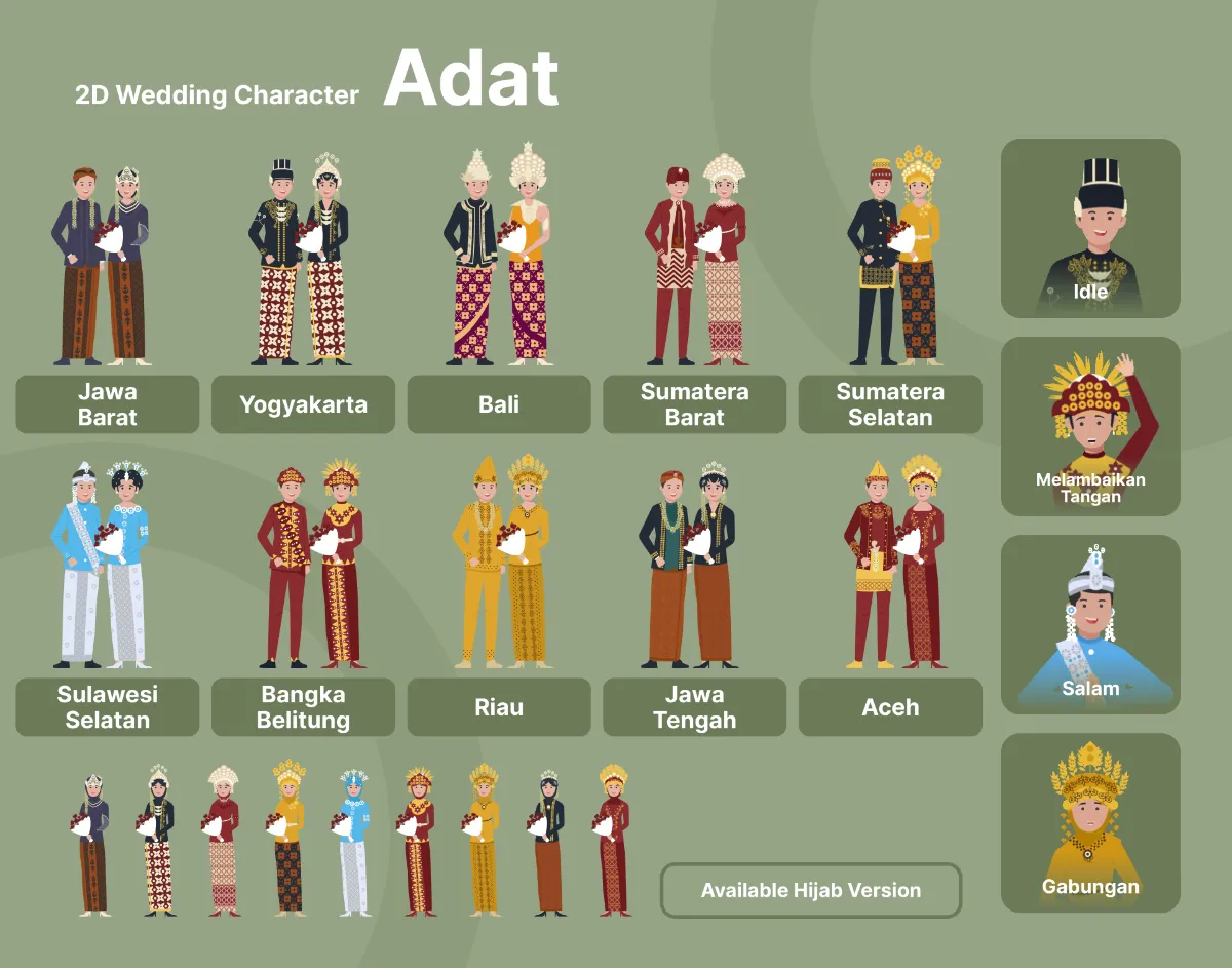 Karakter 2D Adat, Instansi, Casual, Dengan berbagai format.